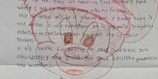 Unsere Patenmädchen aus Indien senden uns immer liebe Weihnachtspost mit selbst gemalten Bildern.