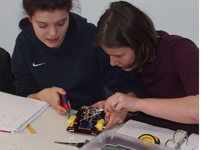 Die dritte große inhaltliche Säule ist die Information: Natürlich denkt da jeder an die Digitalisierung und tatsächlich ist die Programmierung einer elektronischen Steuerungseinheit (Arduino) von ganz zentraler Bedeutung. Es geht aber auch darum, wie man technische Produkte standardisiert darstellen kann (ob als technische Zeichnung von Hand oder als computer-unterstützten Entwurf (CAD)), wie man Messdaten mit elektronischen Sensoren erfassen kann und wie man diese Daten schließlich auswertet.