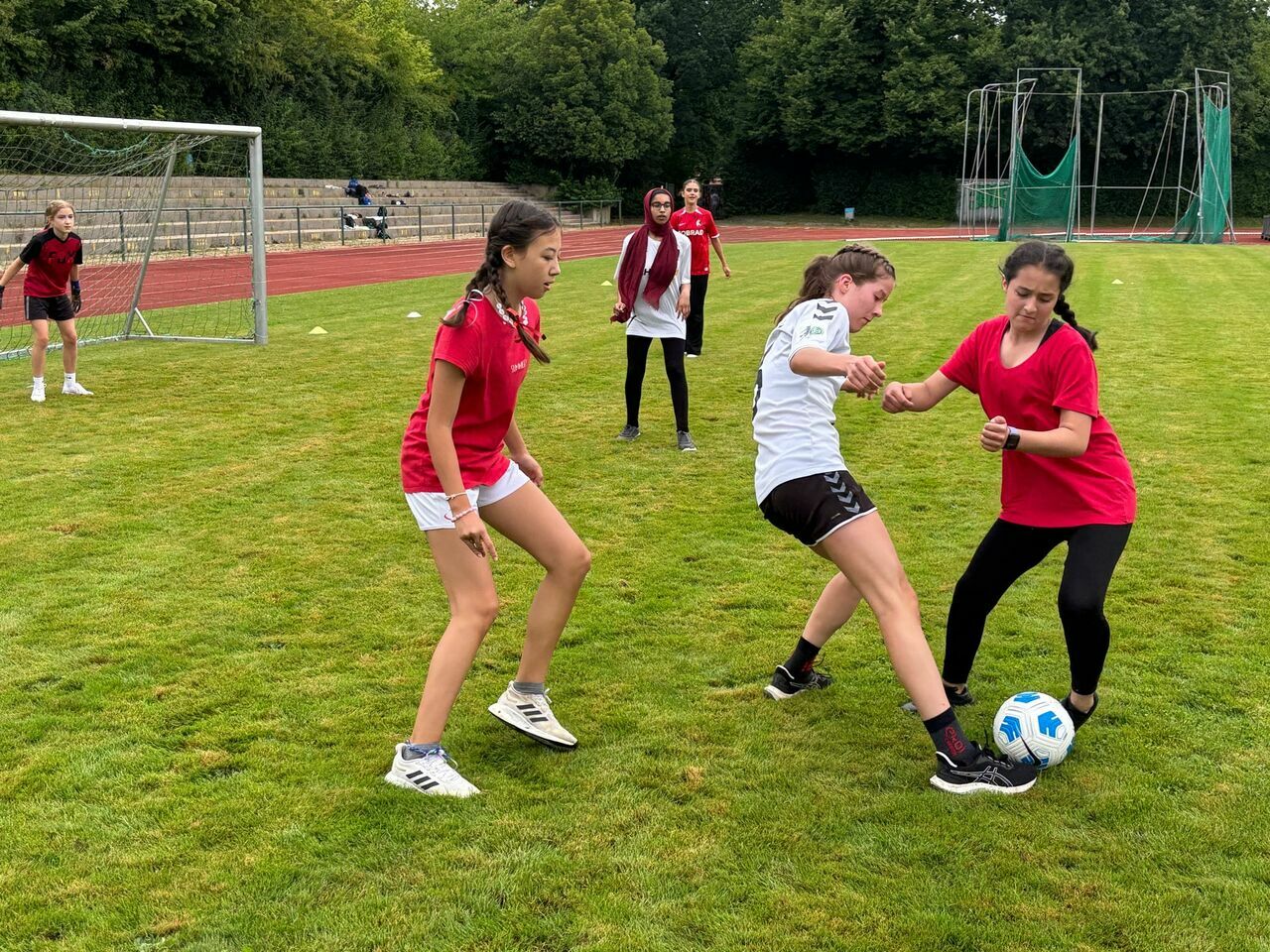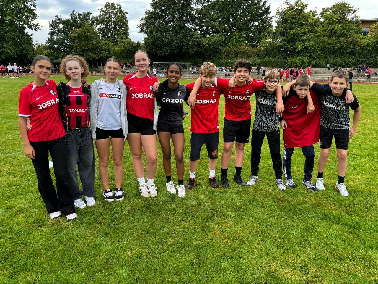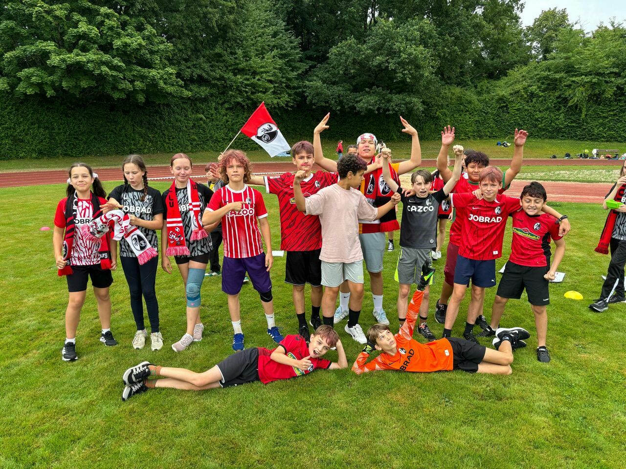 Herzlichen Glückwunsch an die Sieger*innen der Unterstufe (Klasse 6b als HSV), an die Gewinner*innen der Mittelstufe (Klasse 8b als Dresden) und an die K1-Gruppe (Mönchengladbach). Der Fanpreis ging an die Mannschaft Greuther Fürth (Klasse 5b), die lautstark mit Deko und Fansprüchen ihre Mannschaft anfeuerte und als Fangruppe unter allen anderen herausstach.