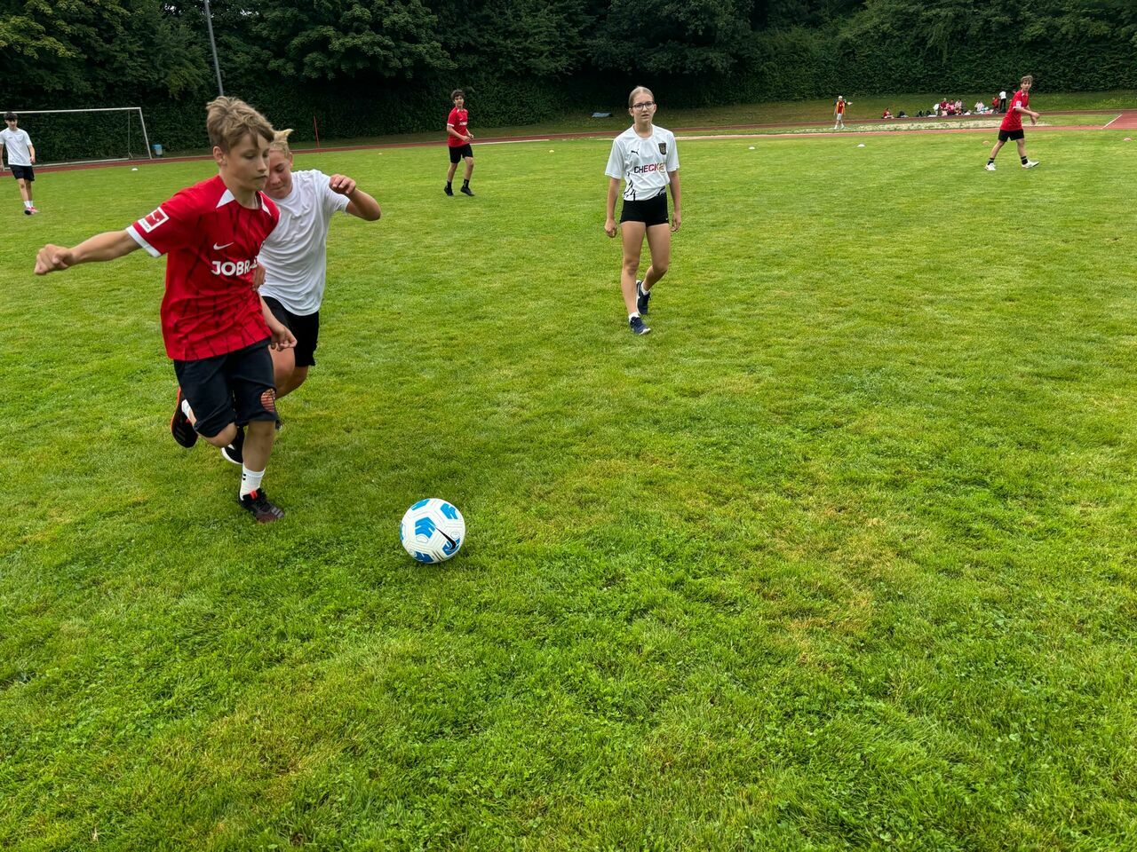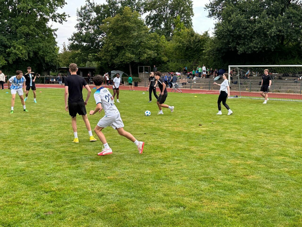 Ein Highlight des Schuljahres ist das SMV-Fußballturnier im Stadion des Bildungszentrums.Am Freitag, den 25.07.25, traten die 5. bis 10. Klassen und die Kursstufe 1 als Bundesliga-Kader gegeneinander an und mischten den Rasen des Stadions so richtig auf. Dabei ging es mit vollem Körpereinsatz heiß her, weil keine der Mannschaften, den Sieg ihrem Gegner einfach überlassen wollte. Die einzelnen Klassenstufen schossen Tore und fuhren Siege und Niederlagen ein. Bei gemäßigten Temperaturen war die Stimmung ausgelassen und gut. Der Spaß überwog bei allen Teilnehmenden.