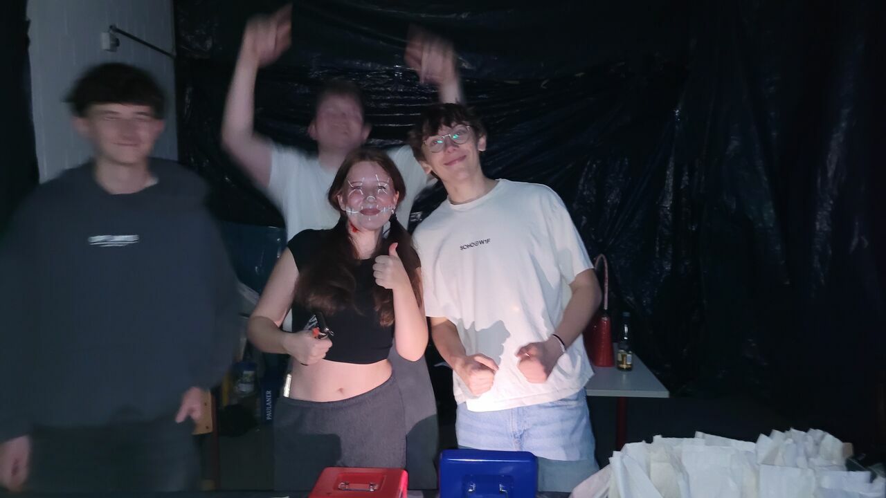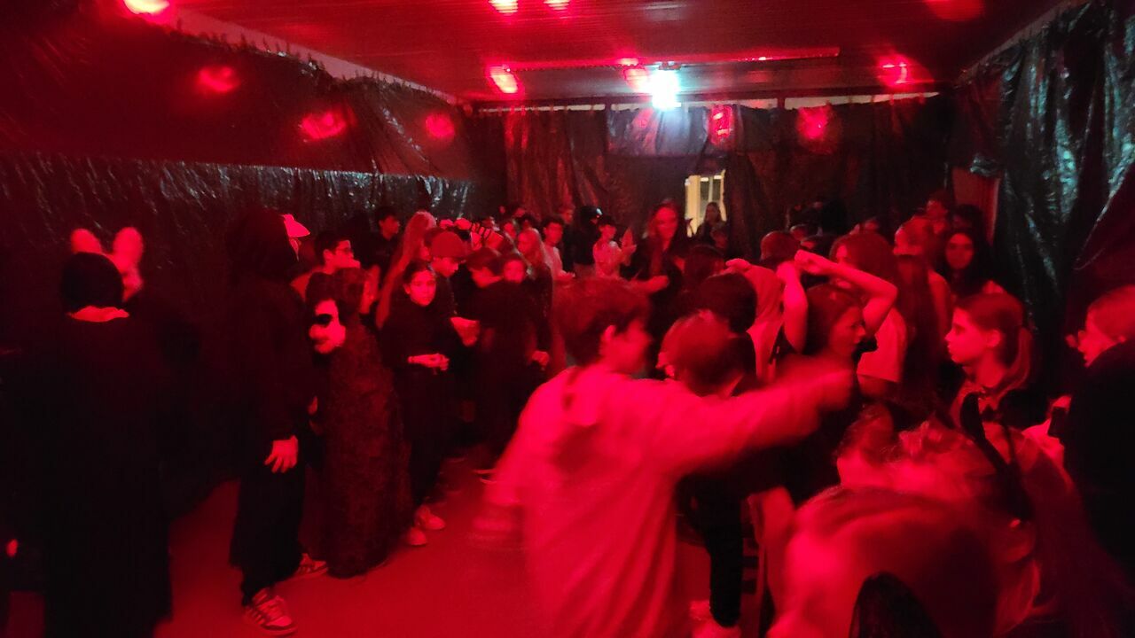 Bereits am Nachmittag verwandelte das Organisationsteam der SMV den Bereich beim Sitzungszimmer in eine Gruselkulisse. Alle Wände und Lichtquellen wurden abgedunkelt, mit Halloween-Deko geschmückt und ein DJ-Pult fand seinen Platz. Ab 18:00 kamen dann passend zum Motto die ersten Besucher*innen der 5.-7. Klassenstufe.