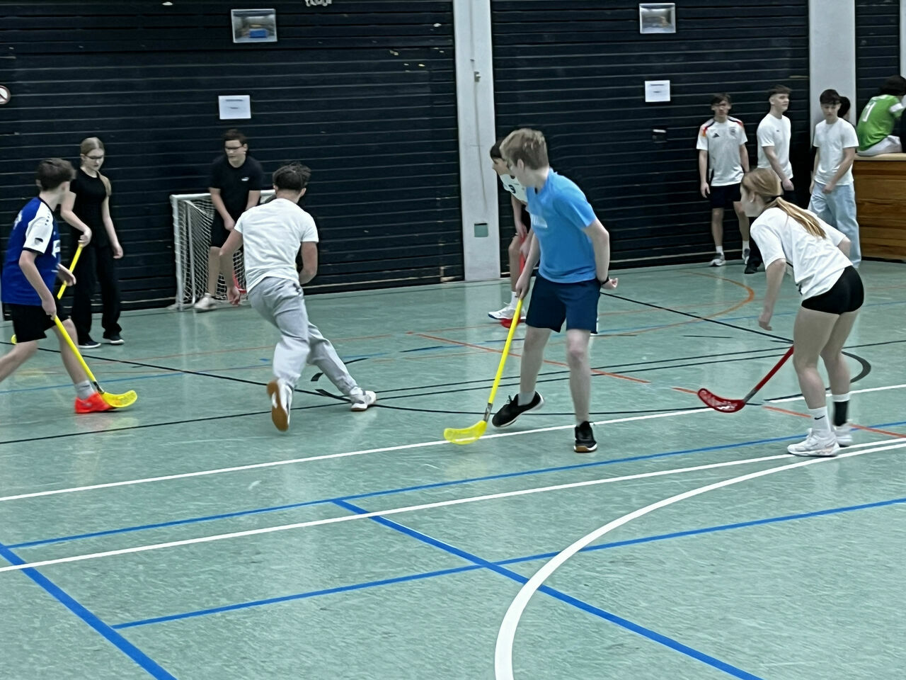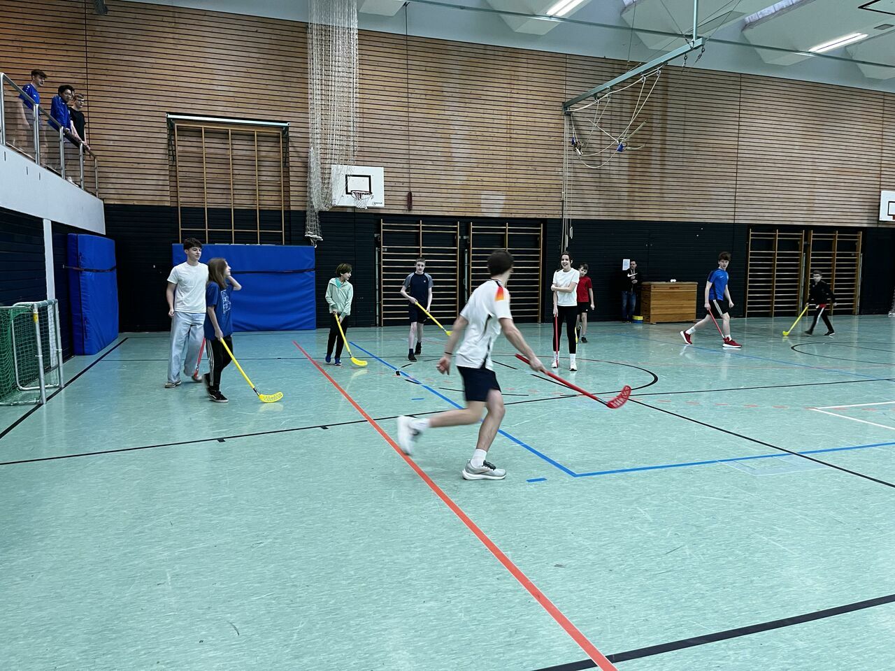 Heiß her ging es hingegen in der Turnhalle unserer Schule: Nach einem ausgeklügelten Spielplan traten verschiedene Teams im Floorball gegeneinander an. Bei guter Laune und unter Anfeuerungsrufen der anderen Schüler*innen konnte schlussendlich ein Siegerteam gekürt werden.
