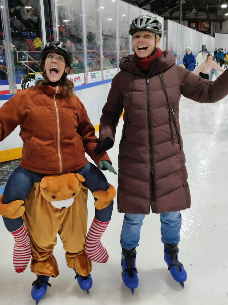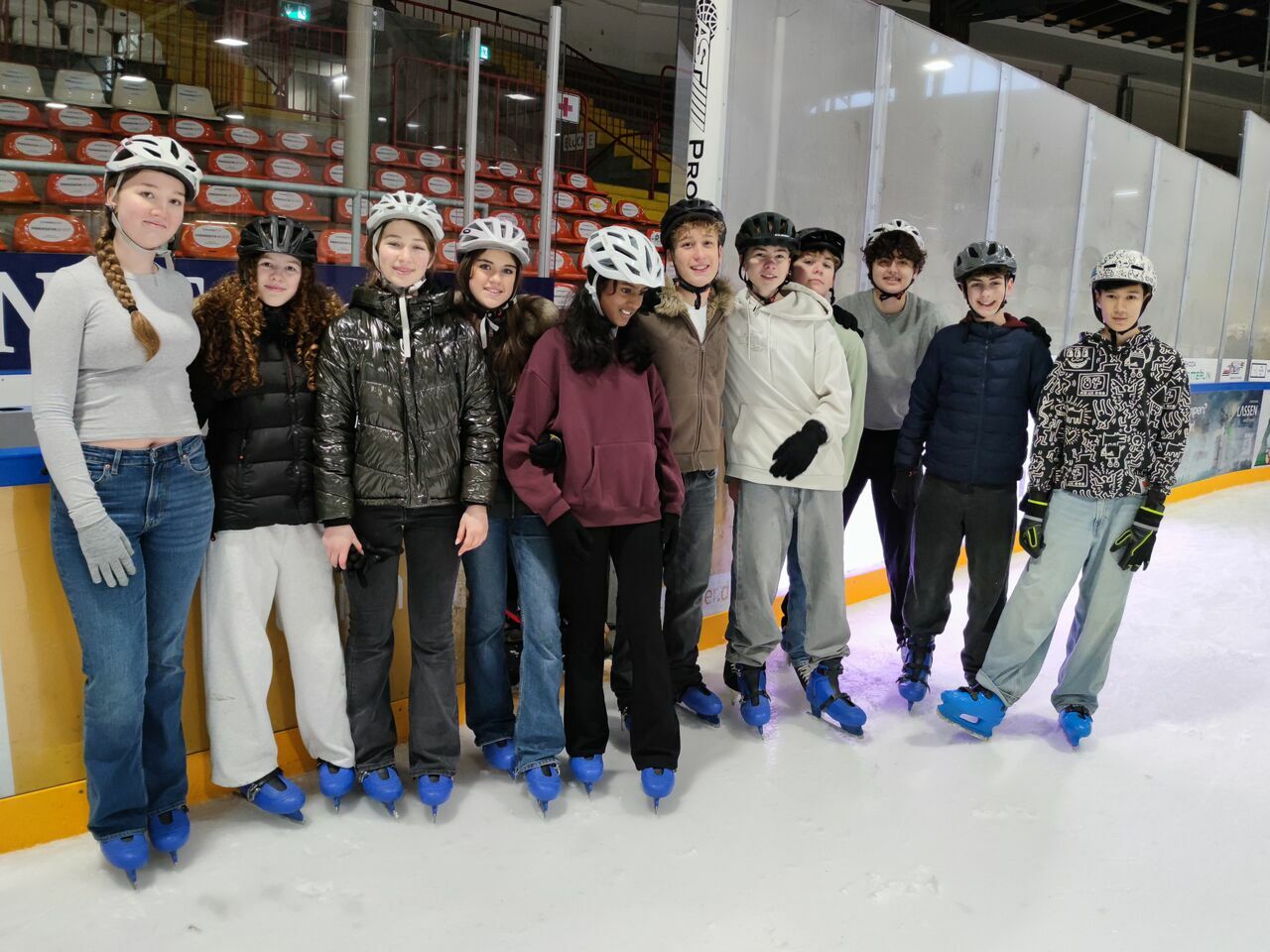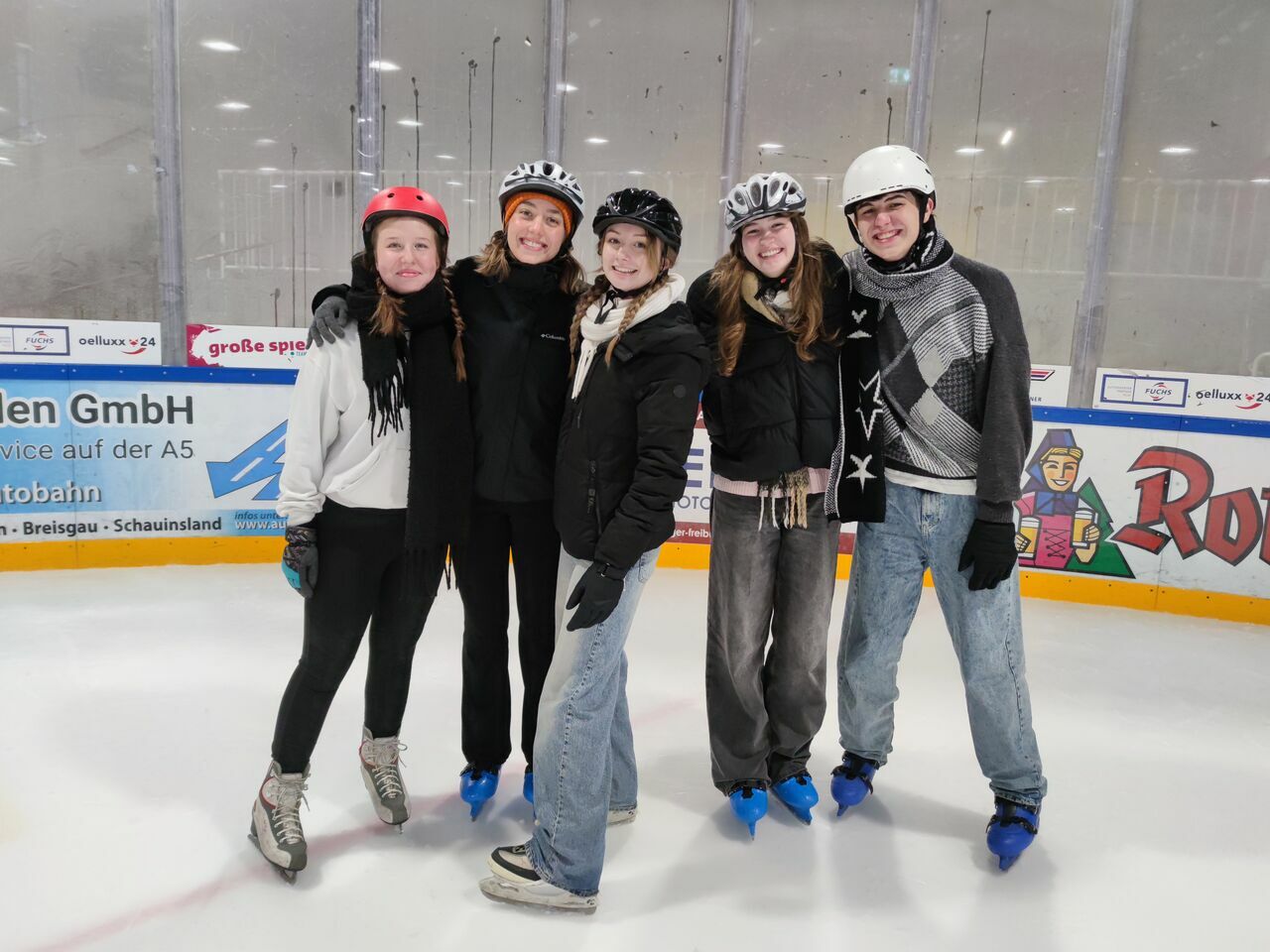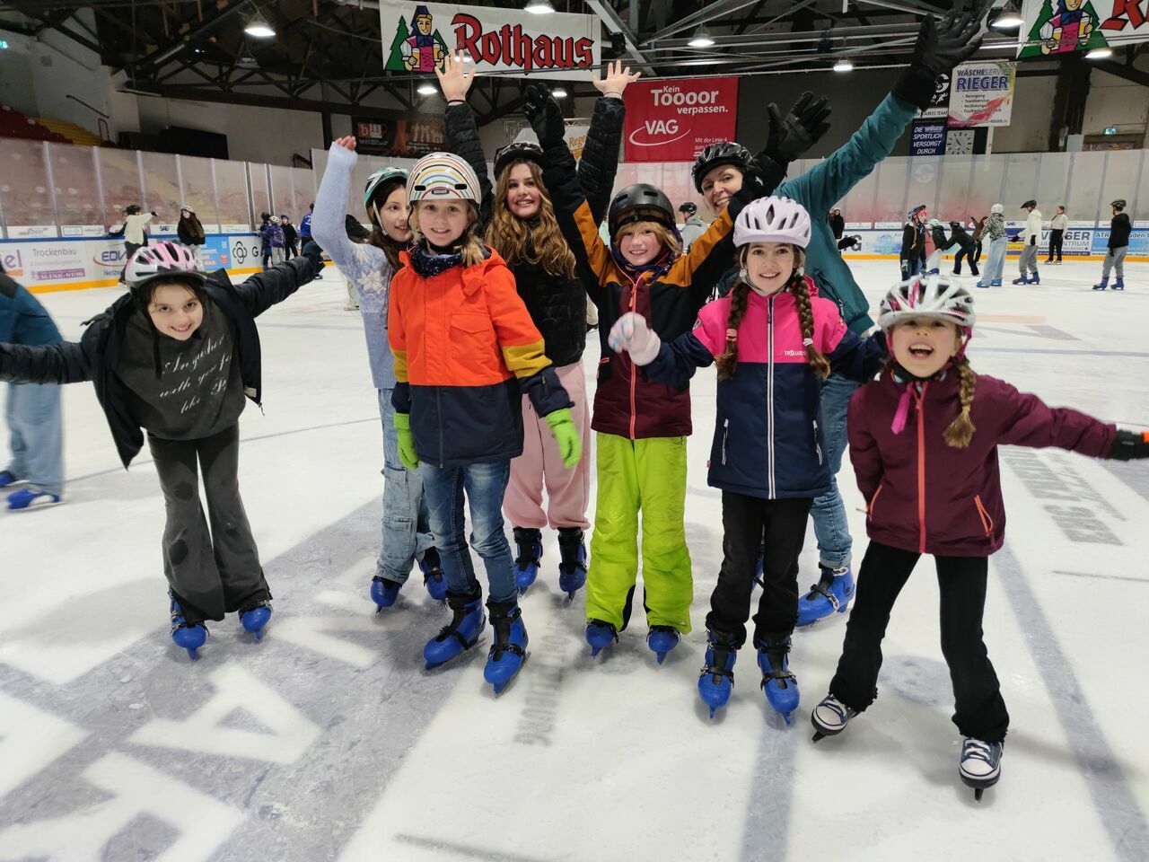 Nicht ganz so kalt, aber immer noch cool war es in der Freiburger Eishalle, wo sich Schüler*innen von Klasse 5 bis K2 aufs Eis wagten und sehr viel Spaß zusammen hatten.